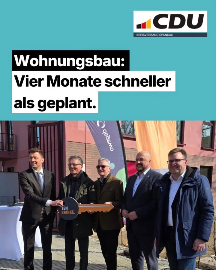 Gute Nachrichten für Spandau 🏗️: Ein neues Wohnungsbauprojekt mit über 120 Wohnungen 🏡 wurde vier Monate früher fertiggestellt als geplant. Die ersten Mieter können bereits einziehen🔑 #Spandau #Wohnungsbau #CDUSpandau #Berlin #Bauen